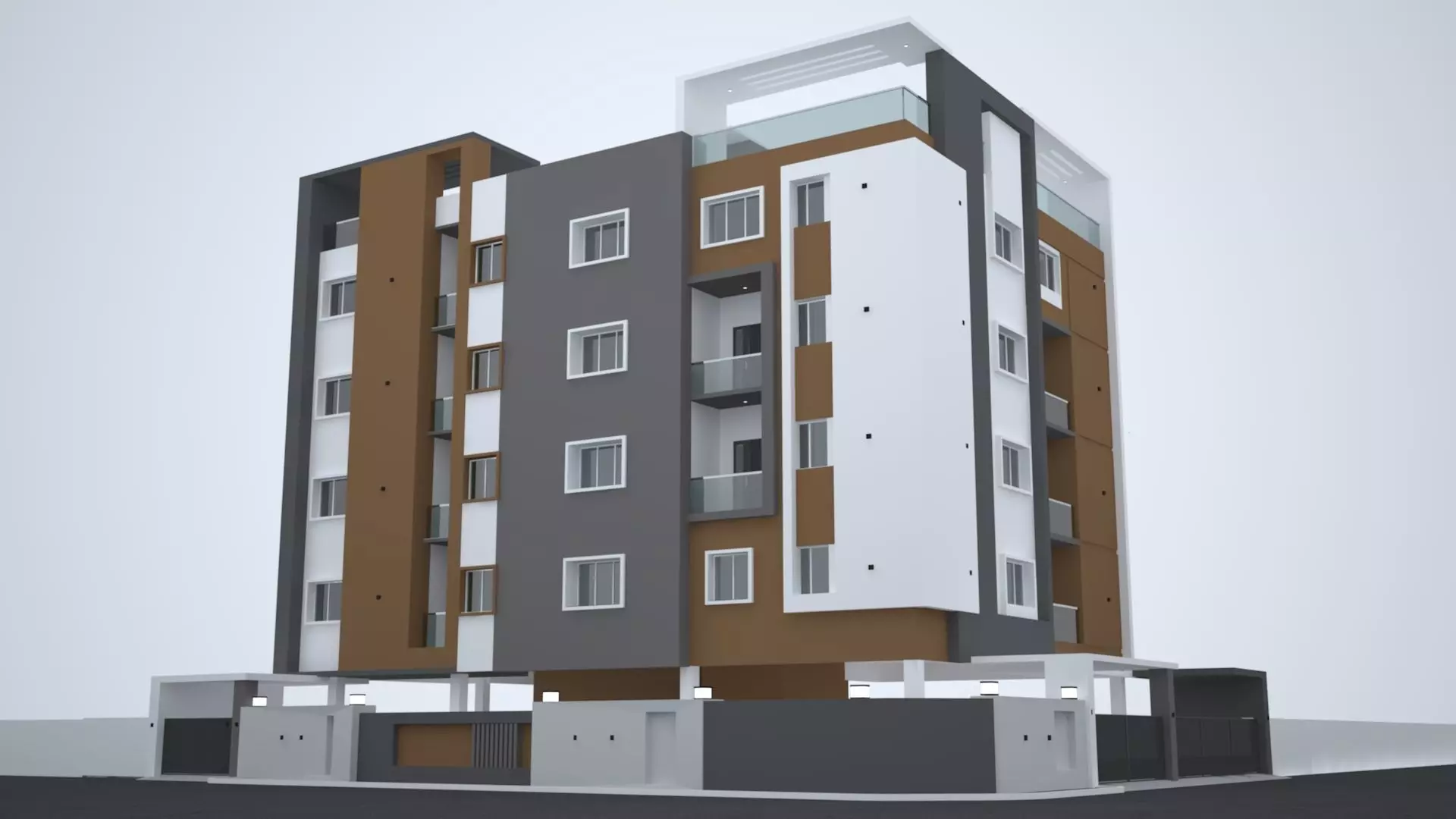 Key Design Elements & Workflow in 3ds MaxStructure & Modeling:Stilt+4 Configuration: A common layout includes a ground-floor parking area (stilt) followed by four residential floors.Modeling Techniques: Often initiated by importing CAD/PDF plans, followed by creating 3D walls, slabs, and columns.Components: Specialized components such as staircases, balconies, and parapet walls are modeled for each floor.Exterior Features: