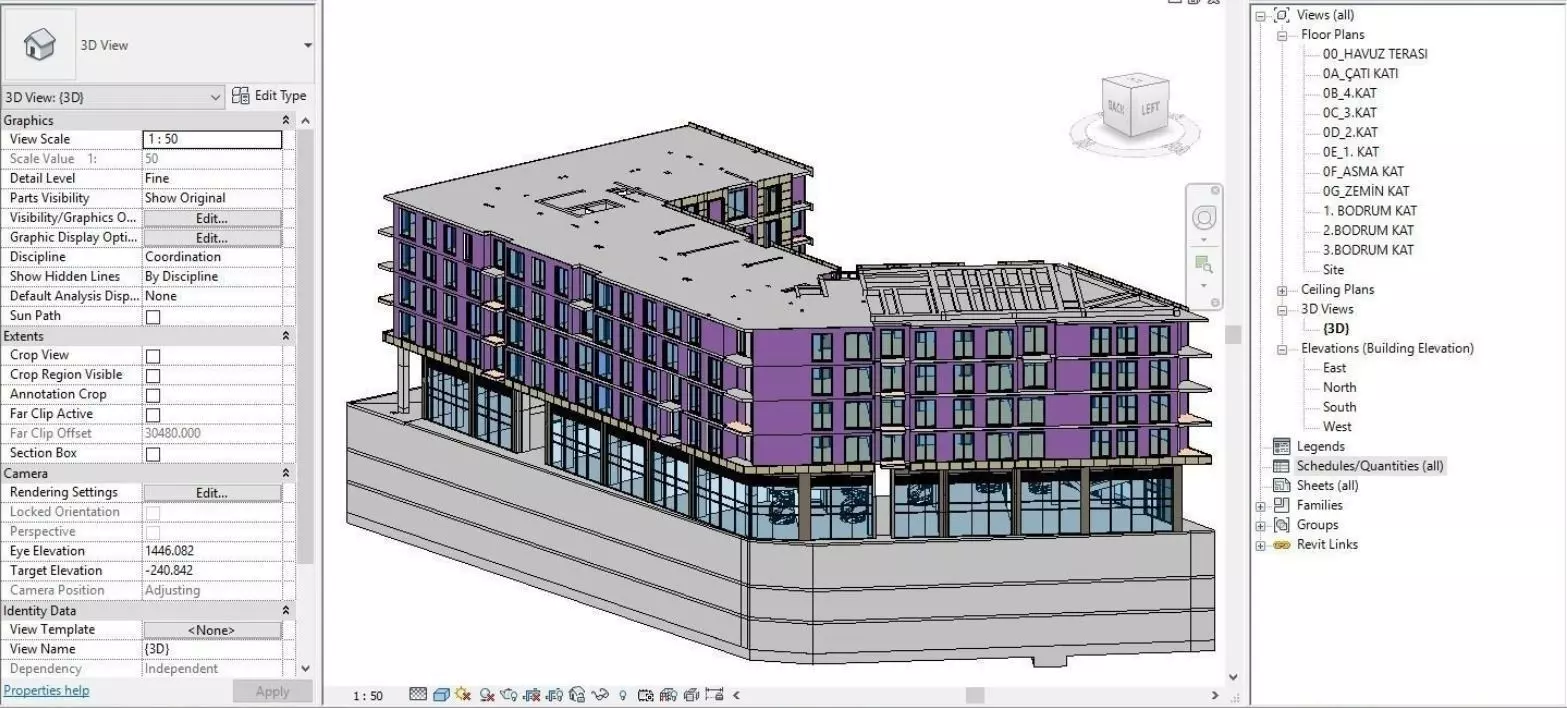 The model has material settings that define how surfaces look (color, shine, transparency, etc.).