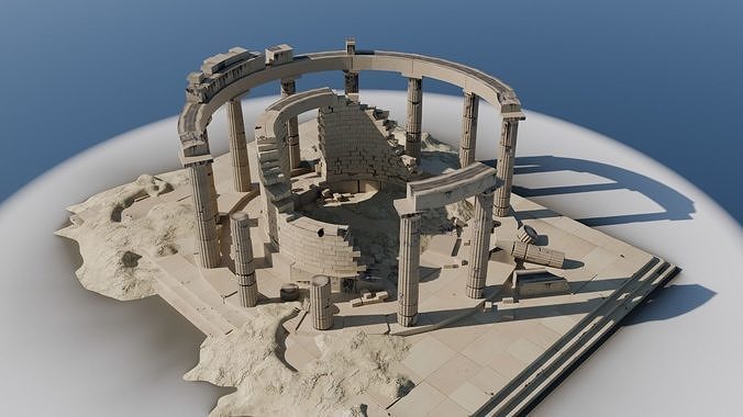 This is old neglected round temple in doric order and dirty look from ancient Greece or Rome. Made of marble. Consists of separated elements like: columns - different variant, stones, blocks, debris. Every part can be moved or deleted. One object one material, objects is properly named and composed. Textures 2k: Normal Map, Diffuse Map, Rough Map.