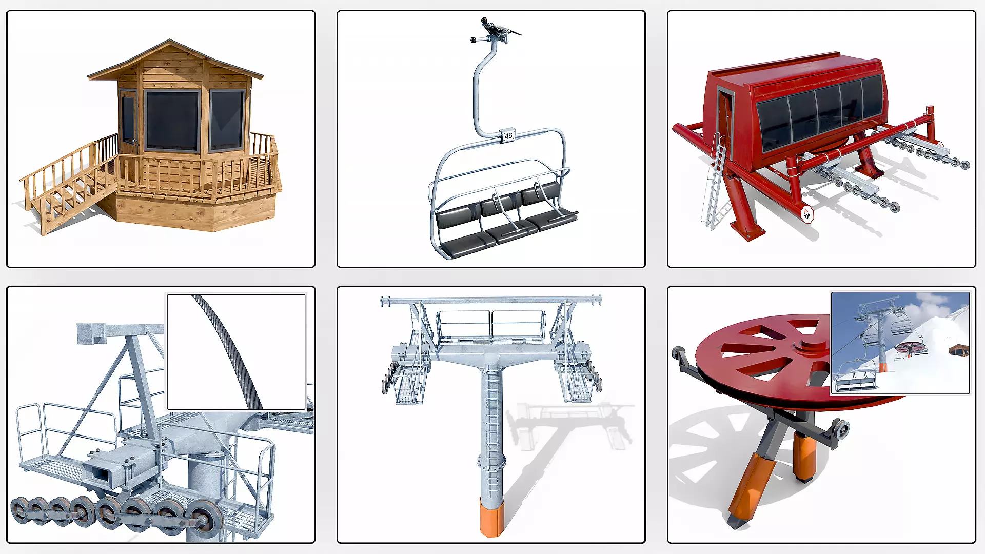 Modular Ski Lift Asset Pack Low-poly 3D model
