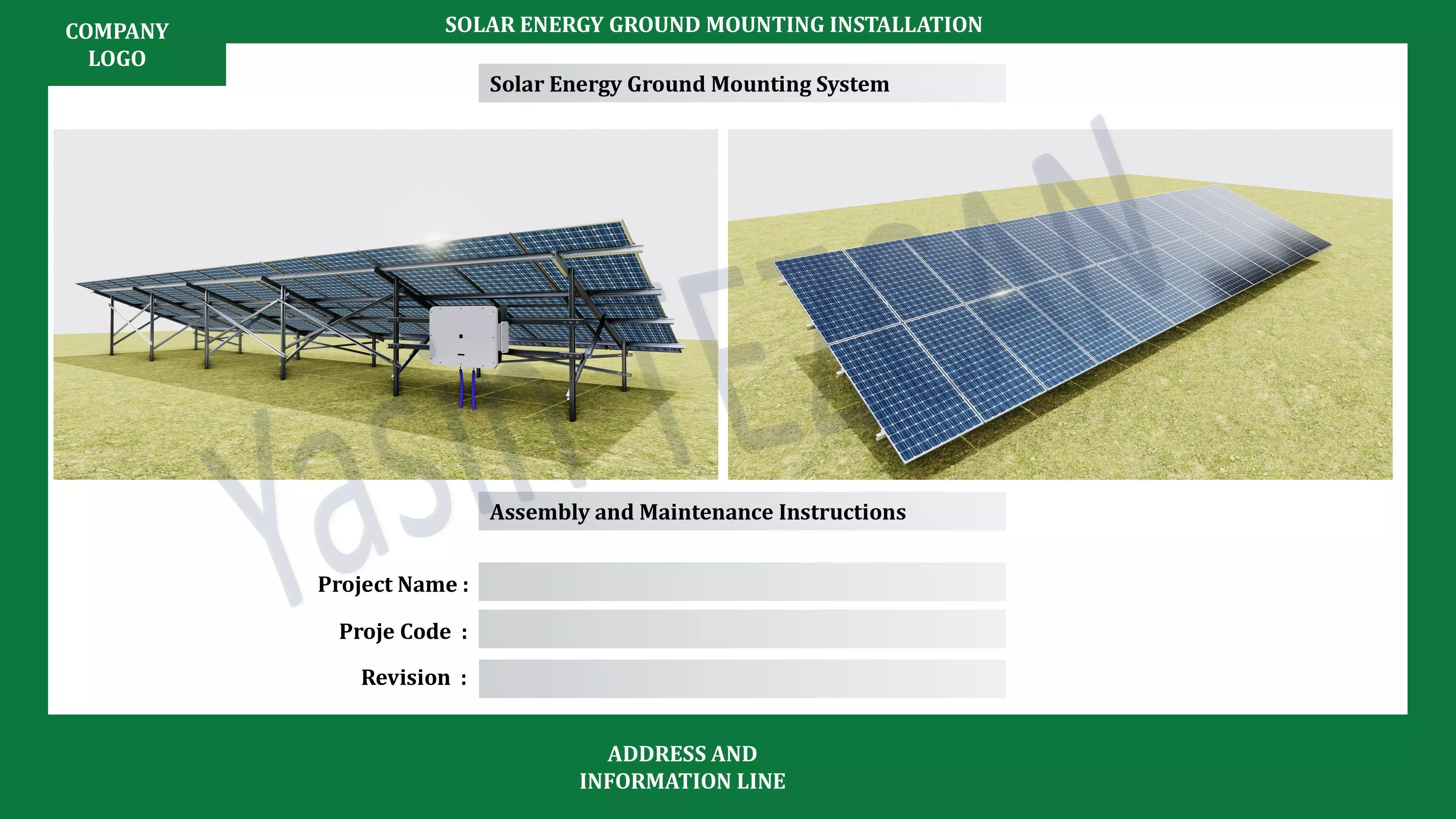 It is prepared in Powerpoint environment, editable and customizable format.It is prepared as a ground assembly guide for single column solar energy construction.There are 2x13 and 2x26 panel arrays in the assembly guide and catalog.