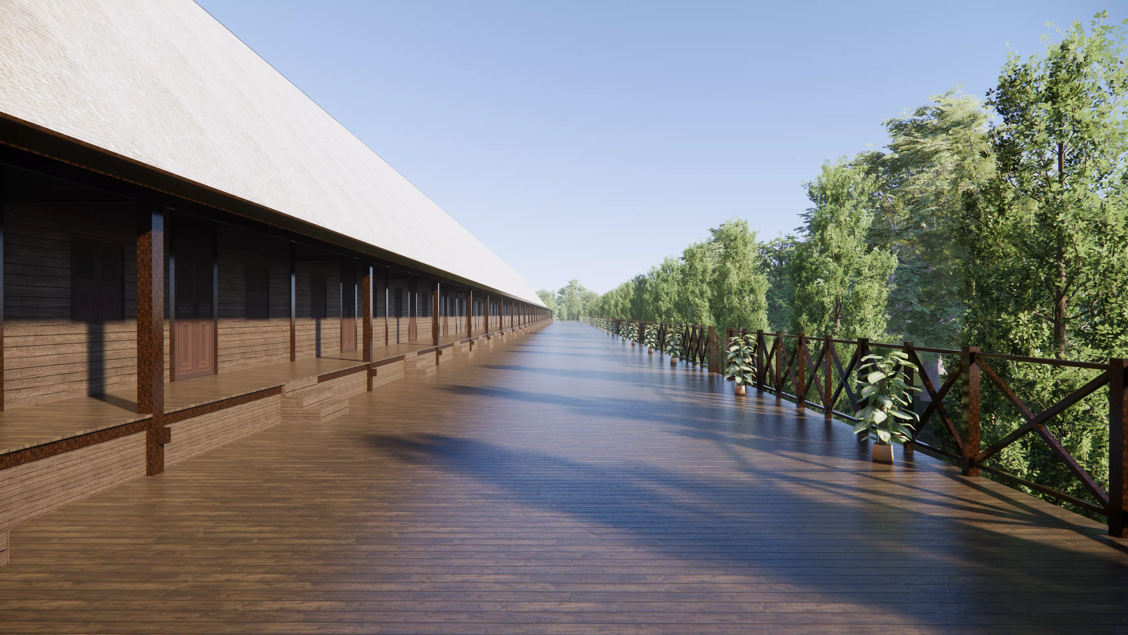 The traditional longhouse of the Iban Dayak community of Sungai Utik is a communal house for the Dayak people who inhabit the Utik River area, Kapuas Hulu. This house was built in 1972 until now there are 28 doors/rooms in it. each room is occupied by one family and generally in this house is a close family. with a height of approximately 2 meters from the ground to prevent enemies from being able to climb the house and also wild animals and floods. The longhouse is located along the river has become a habit of the Iban Dayak community of Sungai Utik who always depend on the flow of river water, in addition to being a livelihood and also a transportation route in ancient times. the length of the building is approximately 200 meters and a width of 40 meters which includes several parts of the room, namely stairs to climb to the longhouse, tanju is an open space without a roof or terrace at the front of the house, kakilima is a path for residents next to the terrace, ruai is a gathering/activity area for residents of the house, bilek is a room or private space for each family, and sadau is a room on the second floor for storing goods and equipment. All of these houses are built with wood materials in the form of ironwood, medang, merbau, langkaking, and other types of wood available in the forest.The traditional longhouse of the Iban Dayak community of Sungai Utik was designed using the Sketchup application and rendered using Enscape to produce a more realistic appearance. There are 6 layers of structural elements in the application so that it makes modeling easier and more detailed and neater. The textures and materials used are included in the SketchUp application. with that, everything shown in the preview image is included in the sketchup application which contains everything. This 3D model sketch can be converted into various applications such as fbx, obj, 3ds, blend, and others. This 3D model can be used for students, researchers, architects, civil construction, humanists and many others.For further questions, you can do this via the shop or Email : 3rd.summer.studio@gmail.com ; Whatsapp : +6289692630617 ; Instagram : 3rd_summerstudio