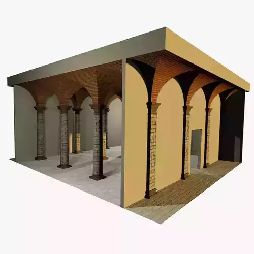 This Romanic Style vaulting is composed of few basic elements instance-cloned to form a simple scene: a vault structure, a round and a square column and a background wall set.