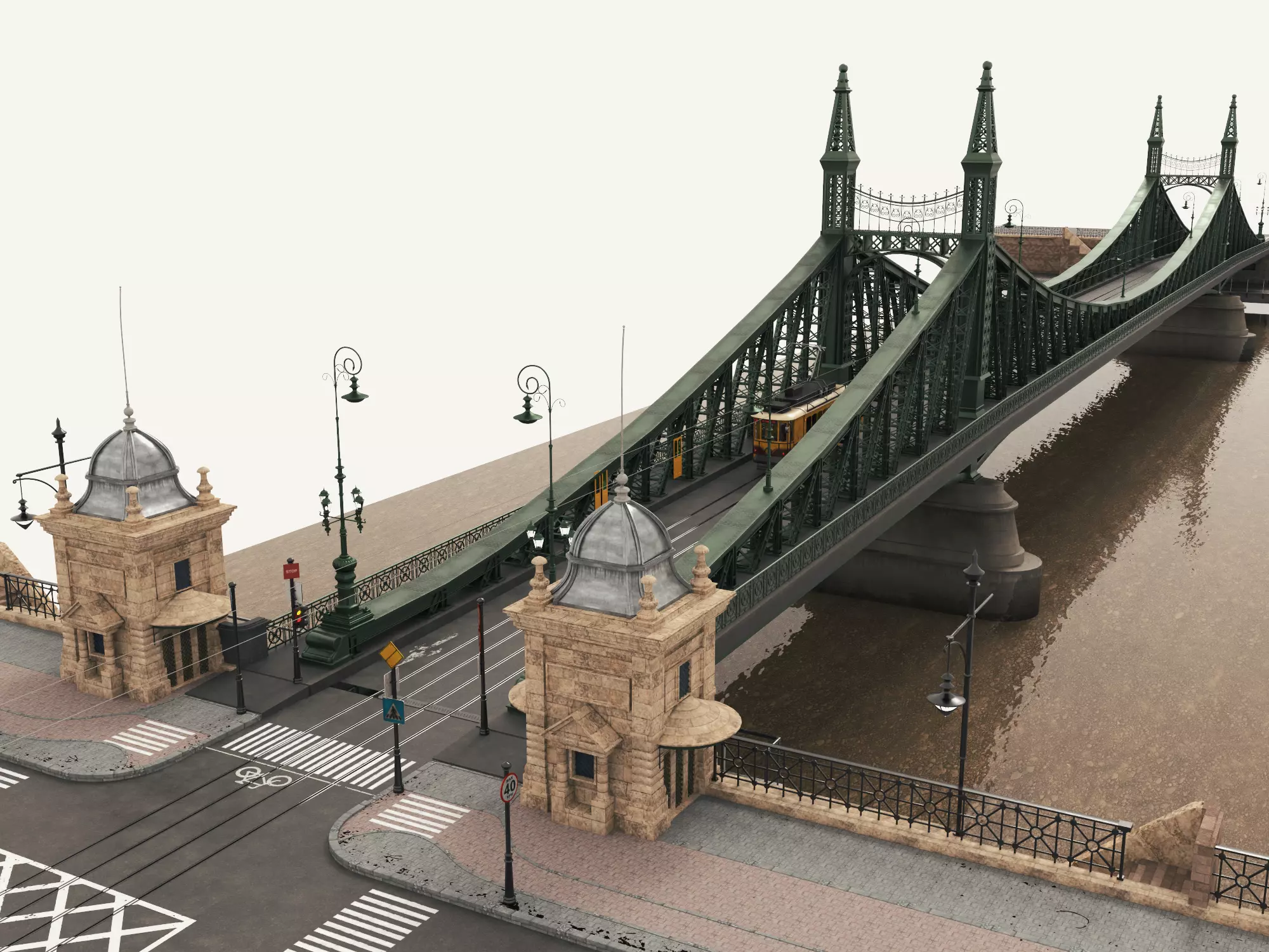 This is a highly detailed vintage steel arch bridge 3D model, inspired by classic European urban bridges, featuring tram tracks, overhead cables, decorative steel structures, and stone architectural elements.The model is ideal for urban scenes, historical environments, cinematic renders, games, VR/AR projects, and architectural visualizations. Every structural component has been carefully modeled to achieve a realistic and believable appearance from both close-up and wide-angle views.Classic European-style steel arch bridge Integrated tram rails and overhead power lines Detailed steel framework, rivets, beams, and arches Decorative lampposts, railings, and stone pillarsRealistic proportions suitable for real-world scale scenesClean topology suitable for high-quality renderingCity and urban environment creation Historical or old-town scenesGames and real-time engines Film, animation, and cinematic shotsArchitectural and transportation visualizationsHigh-quality polygon modeling UV mapped and ready for texturingPBR-friendly workflowModular structure, easy to integrate into larger scenesCompatible with most major 3D software (depending on export format)all the model and OBJ files created with 3dsmax 2020Thank you for purchasing my model
