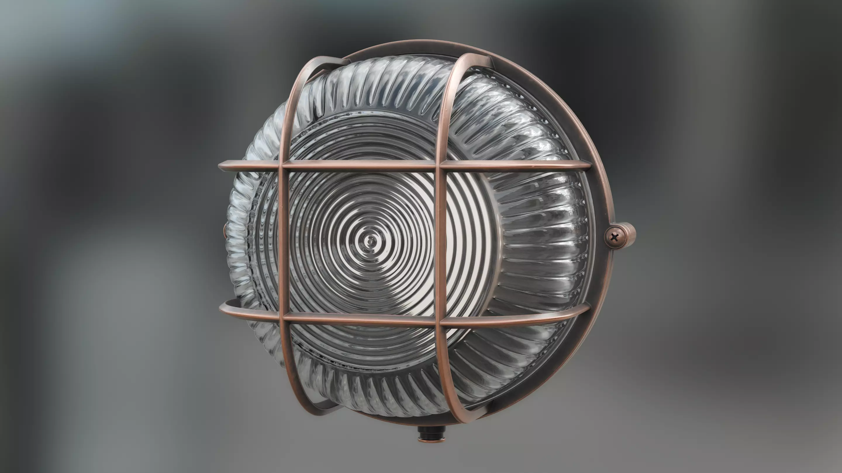 A subdivision-ready model of a bulkhead light with vintage copper frame and ribbed glass. 4K detailed textures . The renders were made in Blender Cycles.