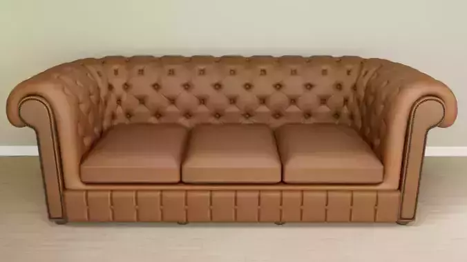 This is a high-quality 3D model of a Chesterfield-style leather sofa, crafted with precision and attention to traditional upholstery detailing. Ideal for architectural visualization, interior design, cinematic environments, or luxury game scenes, this asset features an iconic tufted pattern with buttons, rounded arms, and deep seating cushions.