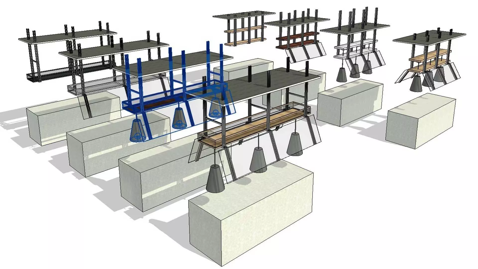 Models are fully adjustable to any design and can be placed onto a ceiling into any project. You can control the length and width of the model, drop height from the ceiling as well as top support above the ceiling onto the structural slab. For correct sneeze guard placement, there are parameters that control the angle of the glass sneeze guard and its x and y extend, so that it can be placed correctly over the food.