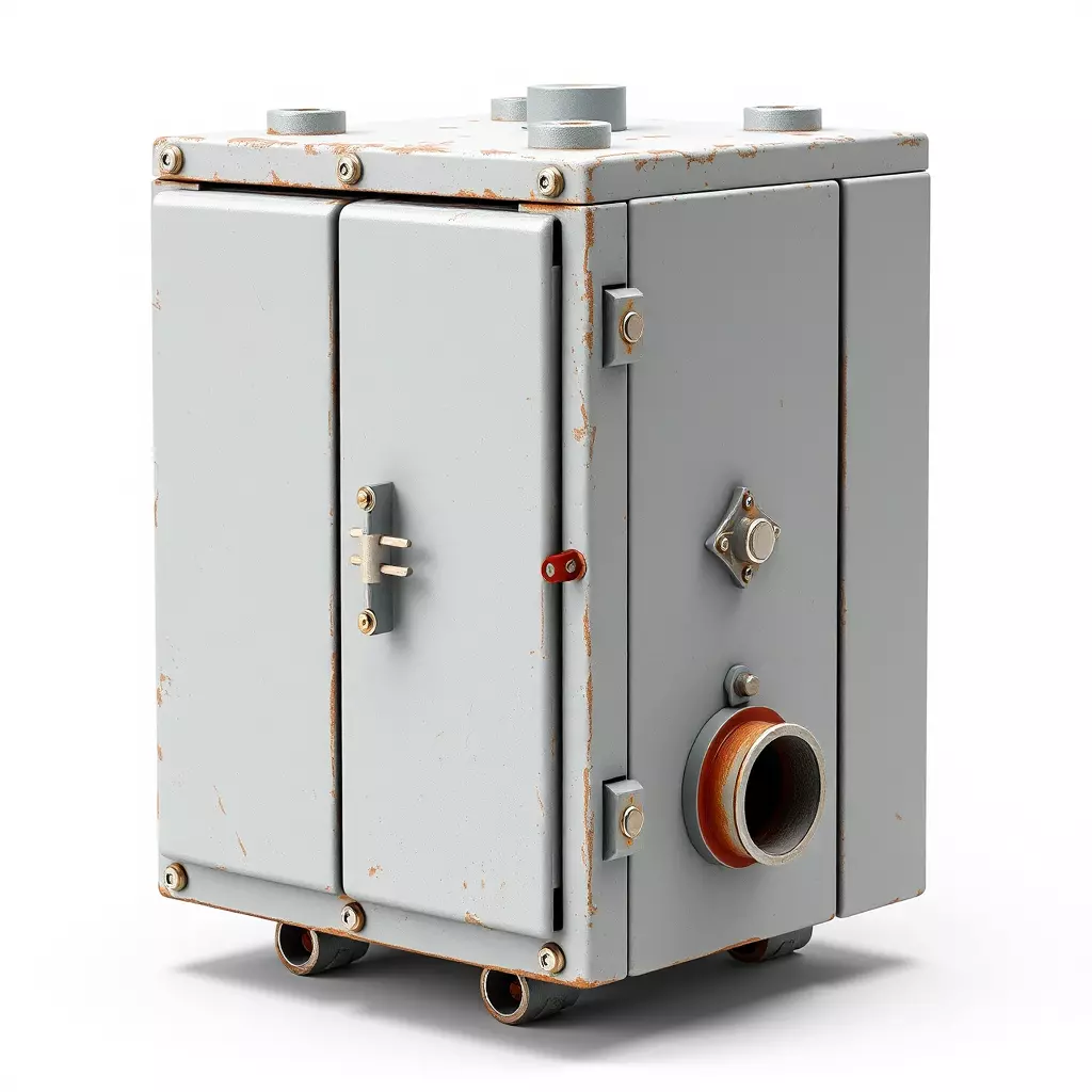 A highly detailed and professionally crafted 3D model of an industrial electrical control box, perfect for adding realism to a variety of digital environments. This model features a robust, weathered metal casing, characterized by a distressed grey paint finish with authentic rust patches and wear marks, providing a gritty, used aesthetic. It includes intricate details such as exposed bolts, sturdy latches, and various conduit connections or ports on its surfaces, reflecting a true-to-life industrial component. Optimized for both real-time applications like game development, virtual reality (VR), and augmented reality (AR) experiences, as well as high-fidelity static renderings for architectural visualization, digital art, or cinematic scenes. The clean, efficient topology ensures smooth performance, while comprehensive UV unwrapping allows for seamless texture application. This asset is ready to be integrated into any project, enhancing industrial zones, post-apocalyptic settings, sci-fi landscapes, or forgotten factory interiors. The model is prepared with PBR (Physically Based Rendering) textures, guaranteeing accurate material representation under any lighting condition. Supported file formats include GLB, OBJ, FBX, USD, DAE, ABC, and PLY, ensuring broad compatibility across various 3D software and game engines.