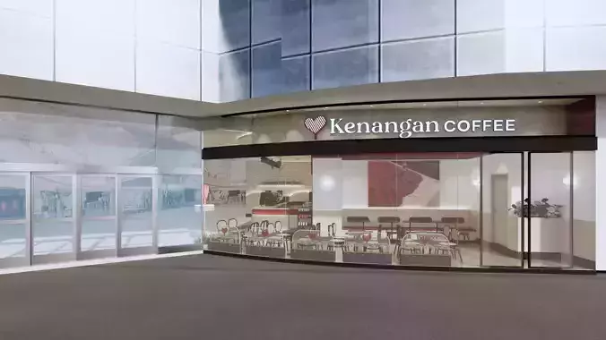 Design Features:Authentic Brand Identity: Accurately modeled Kenangan signage, menu displays, and the signature Deep Slate & Copper color scheme.