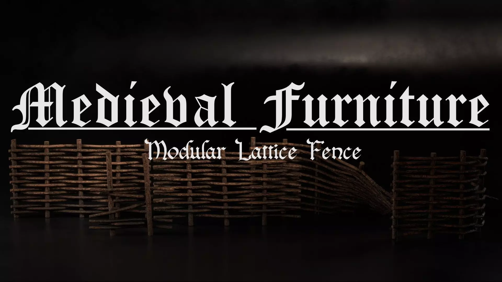 A modular medieval woven lattice fence set built for rustic village scenes, farm boundaries, woodland paths, and neglected settlement edges. The set captures the look of hand-woven branch fencing, with irregular silhouettes and natural spacing that give it a convincingly handmade character. Surface detail blends weathered wood, rough bark, and subtle moss growth, adding age and environmental realism without overwhelming the form.