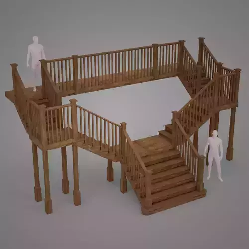 Modular Wooden Staircase Kit Low-poly 3D model