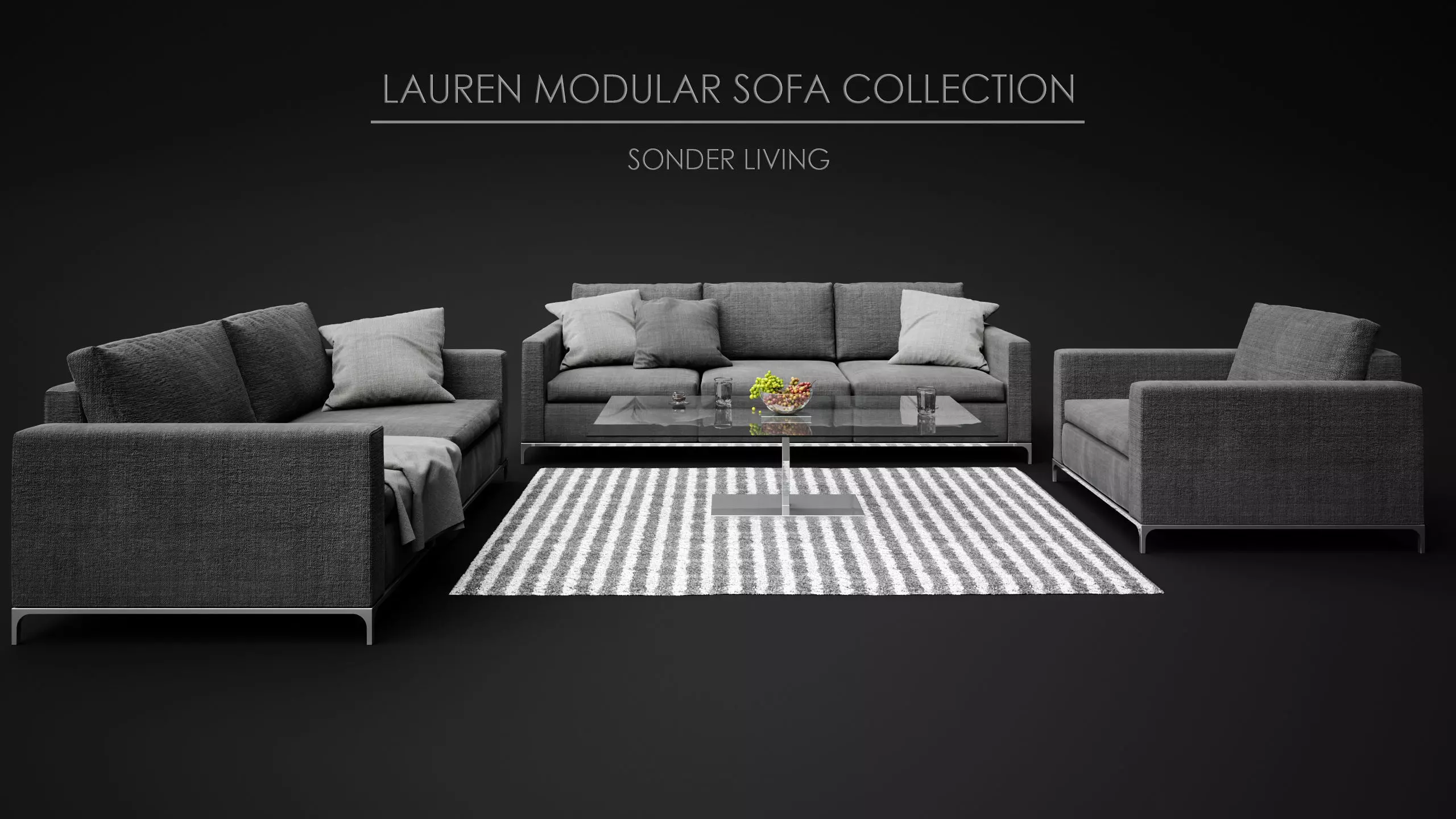 Highly detailed 3d model of the Lauren Modular Sonder Living Sofa set with the Armchair and the coffee table with all textures and props. This is a high quality, very realistic, 3d model that is ready to use, just put it into your scene and render the image. Please check out our profile for more similar 3d models. For this purchase, we included models for 3ds Max and V-ray, Blender, FBX (without textures), and OBJ format. This model comes with high quality - 4k - textures that can be used as for home and the office furniture. The presented model was rendered in V-Ray 3.5 with 3ds max.