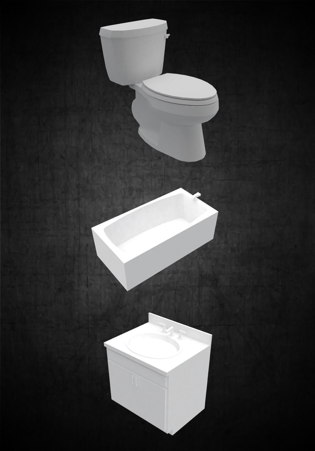 Toilet sink and tub pack simple for any designers or architects Low-poly 3D model