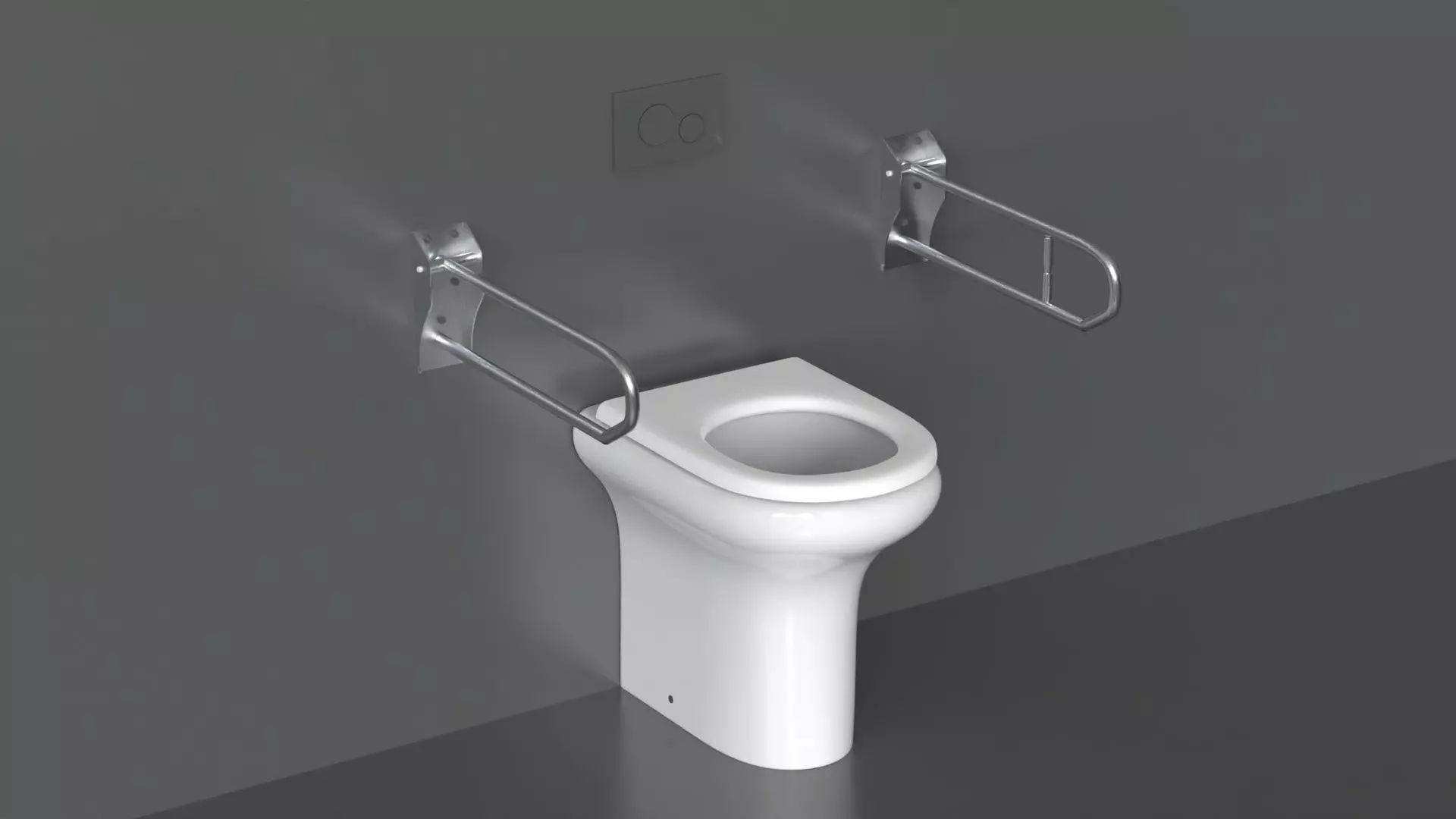 Highly detailed floor-mounted modern WC Toilet with support handles. Modeled in 3DS Max and rendered using KeyShot render engine (although the textures from any render engine can easily be applied).
