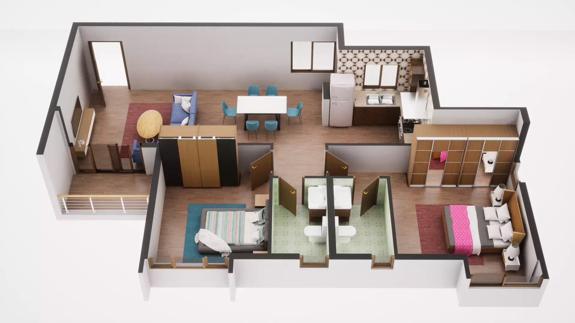 Uses Physically Based Rendering materials, which give the model realistic lighting and surface properties.