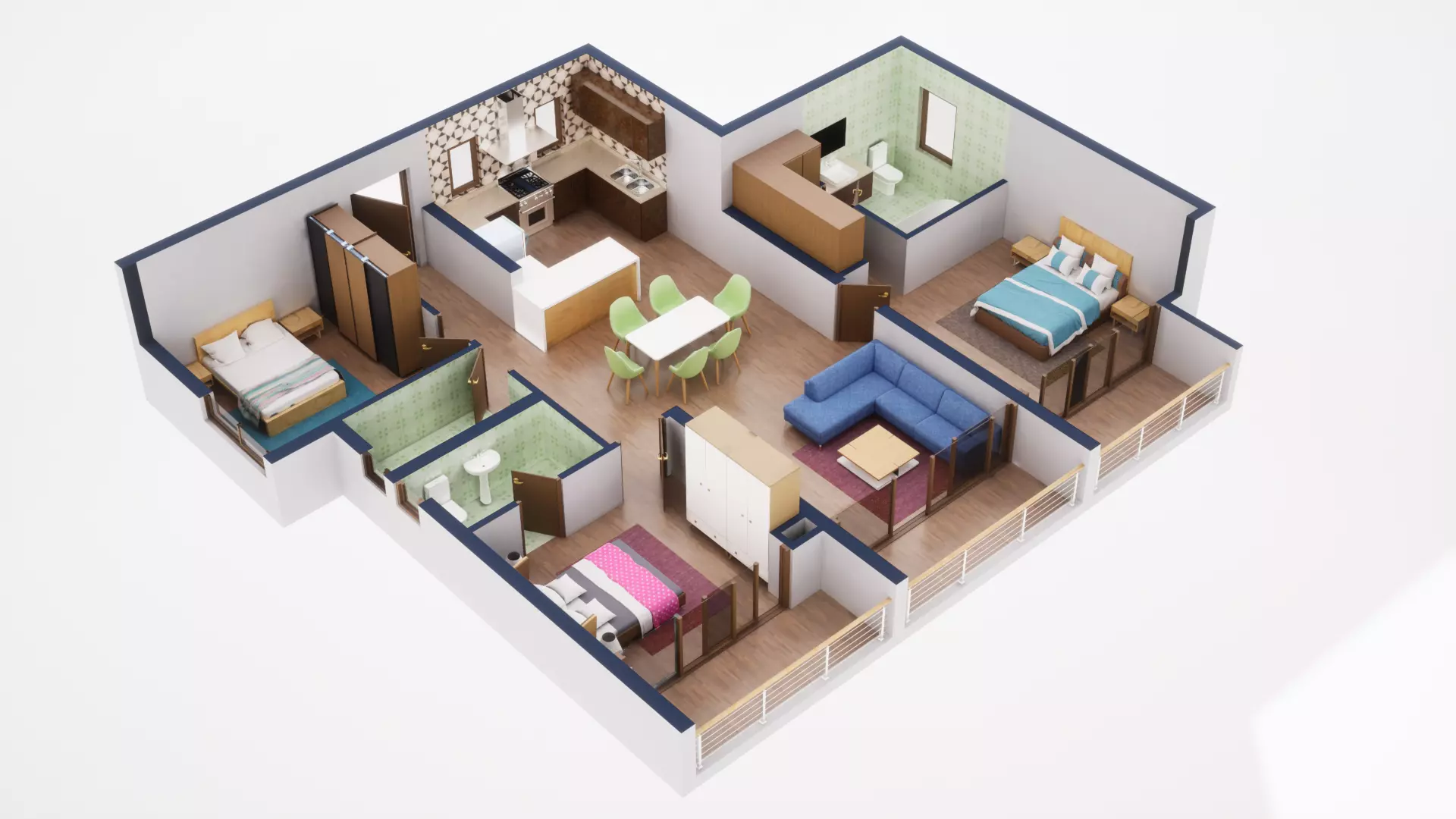 Uses Physically Based Rendering materials, which give the model realistic lighting and surface properties.