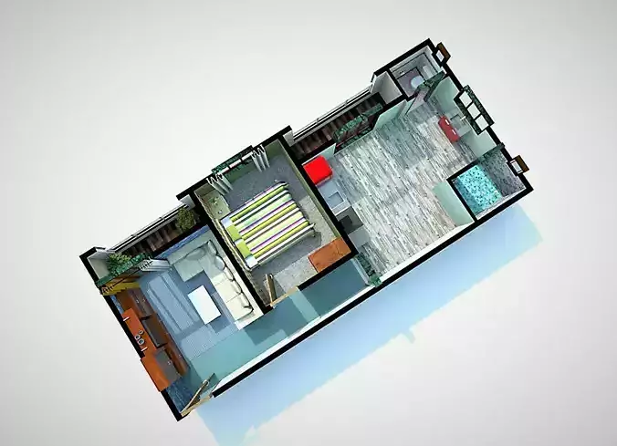 The model has material settings that define how surfaces look (color, shine, transparency, etc.).