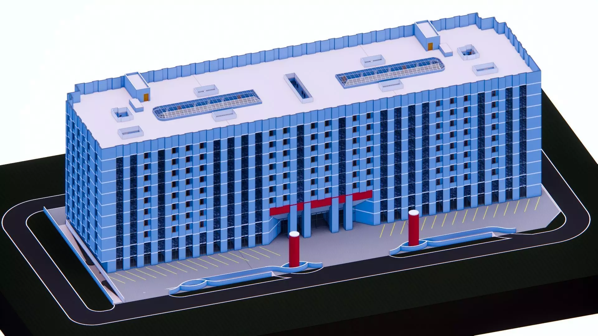 The model has material settings that define how surfaces look (color, shine, transparency, etc.).