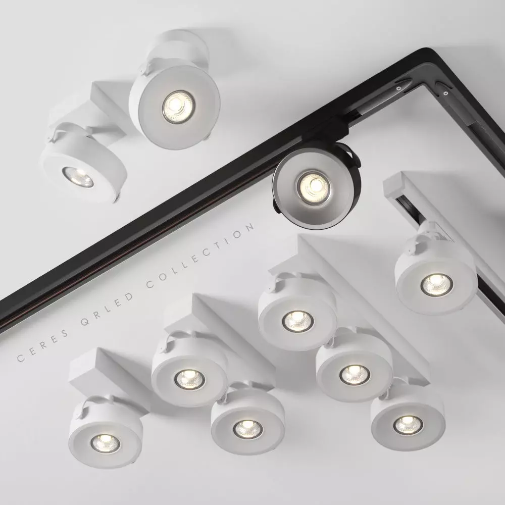 Model includes 6 configurations of AQLed lights: spotlight, spotlight and track versions; and essential units to design your own track layout - surface or suspended.