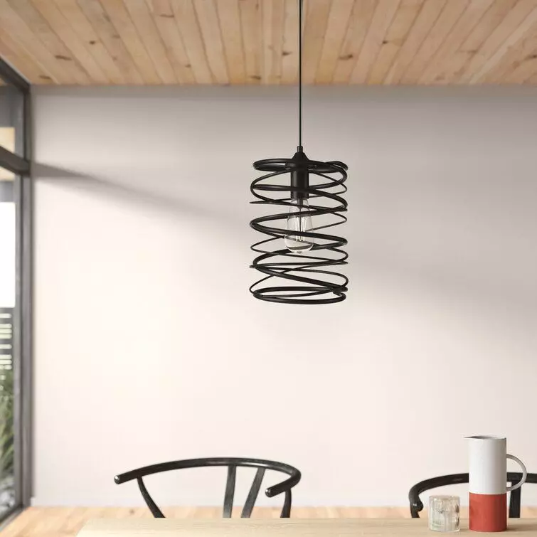 • Add bold, modern style to your space with this striking geometric single pendant. Crafted from metal, its matte black finish and unique spiral shade demand attention in any room.