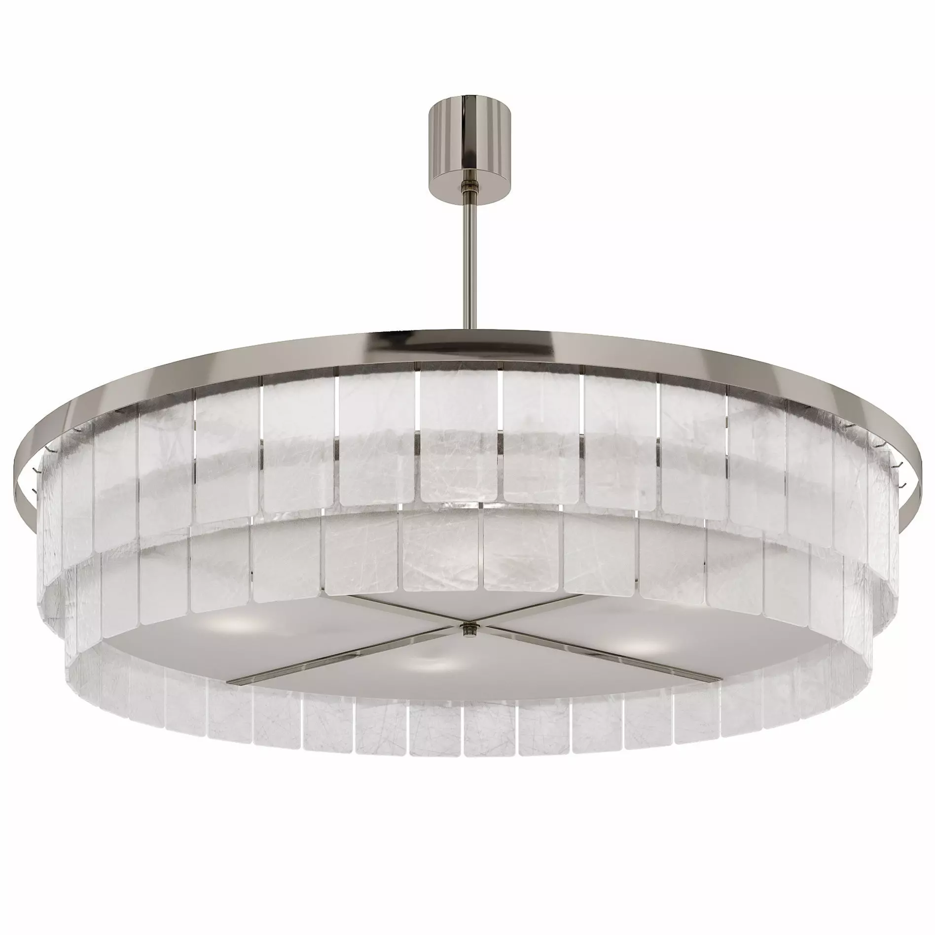 A new, sleeker version of our popular Savile Rowchandelier with two-tiers of hand-carved Lucite tilesand a bottom diffuser, which is supported on elegantcross braces