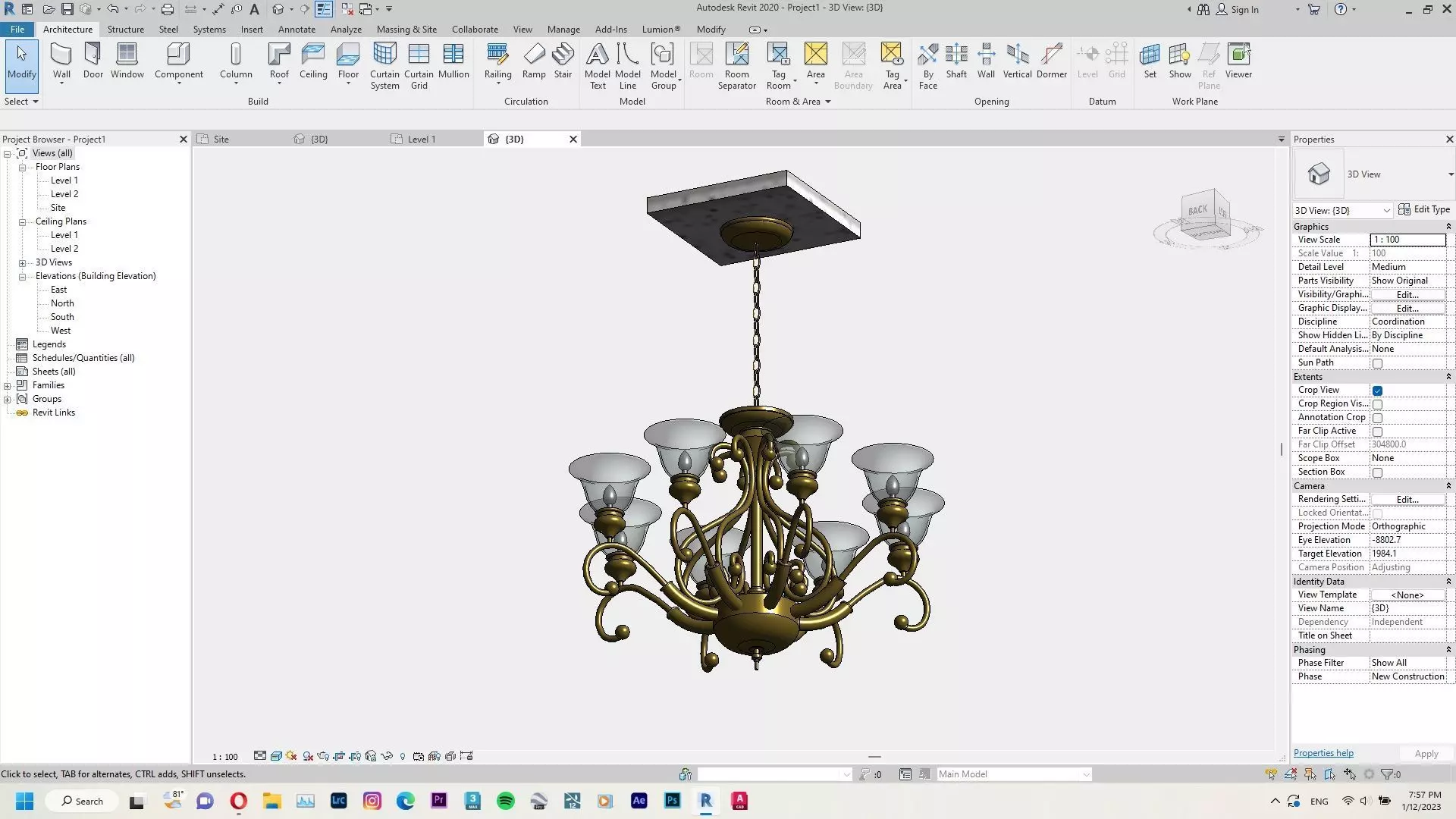 The model has material settings that define how surfaces look (color, shine, transparency, etc.).