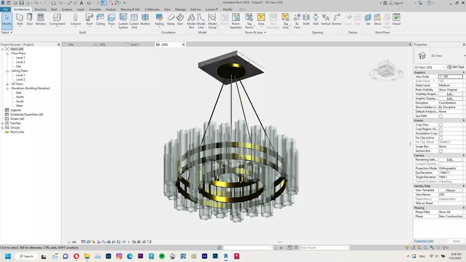 The model has material settings that define how surfaces look (color, shine, transparency, etc.).