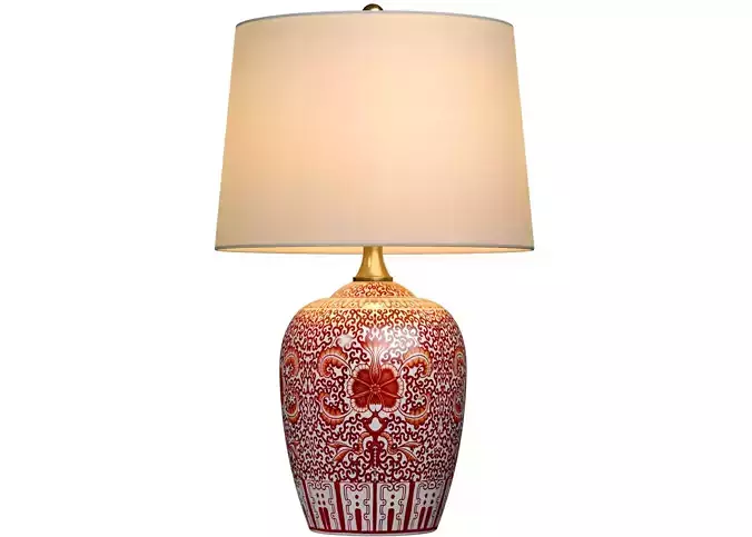 Coral Ming Temple Jar Oriental bedside Table Lamp 3D model