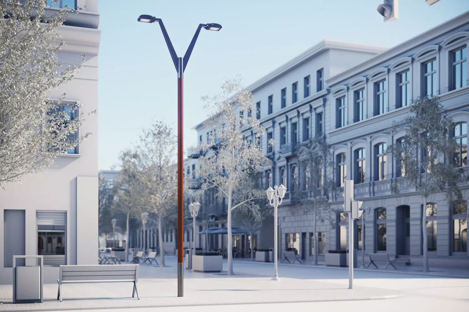 This high quality model includes lighting pole branching in the upper part into two lamps.Model prepared for 3d architectural visualisations and other graphic works.