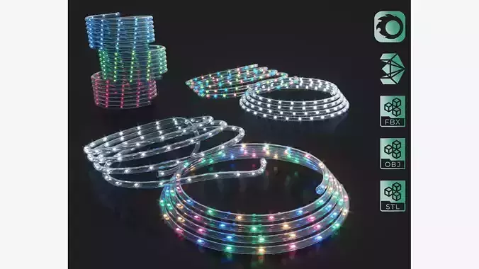 This is set of Light hose LED Christmas tree lamps. Scene contains 4 straight modules, X Formed and ready to use with path deform modifier.Each module is about length 3000mm (3m), easy to connect to get the desired length.