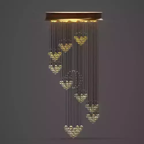 Golden Crystal Cascade Chandelier Low-poly 3D model