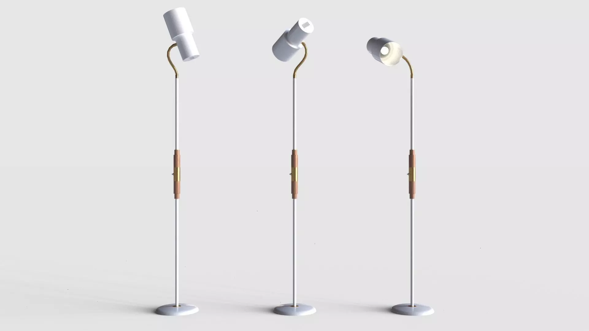 White retro floor lamp. Game ready (VR/AR) model with a nice metallic texture, with wooden and brass details. PBR textures.