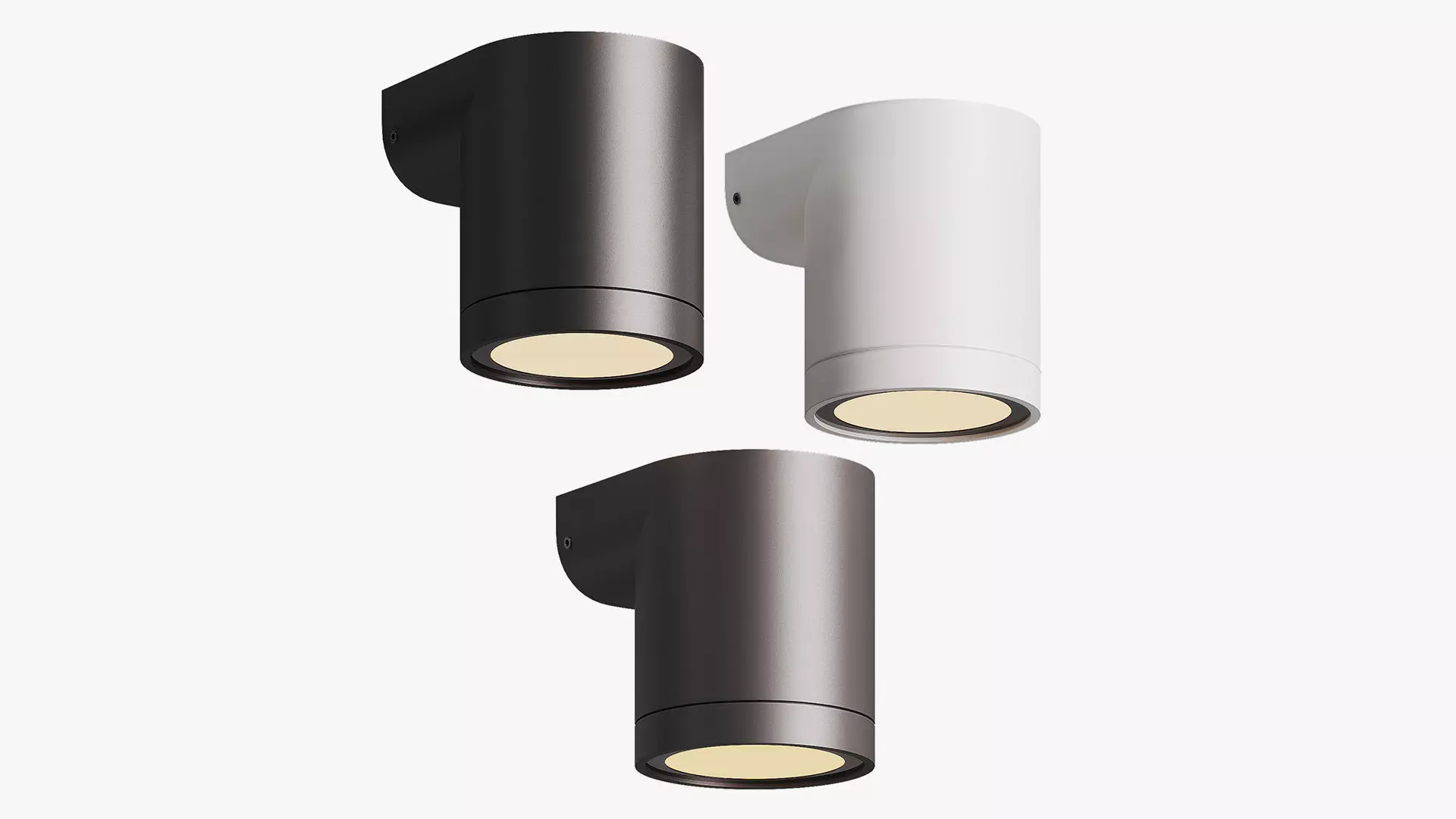 Barrel facade lamps are suitable for highlighting the walls of a building in the exterior. Materials: black metal, gray metal, white metal. The size of one lamp: 125*120*100 (mm)