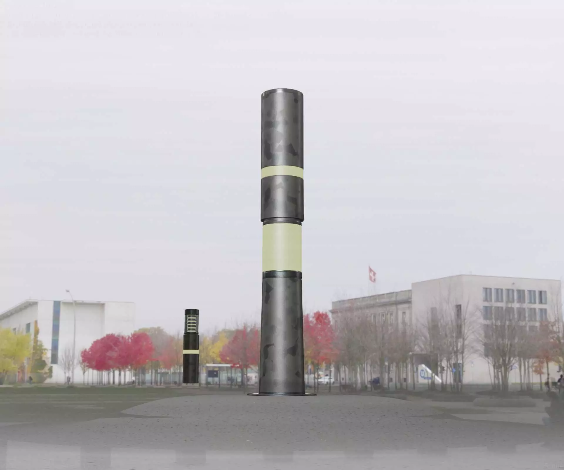 The galvanized textured light column 8 out of the street light set 9.