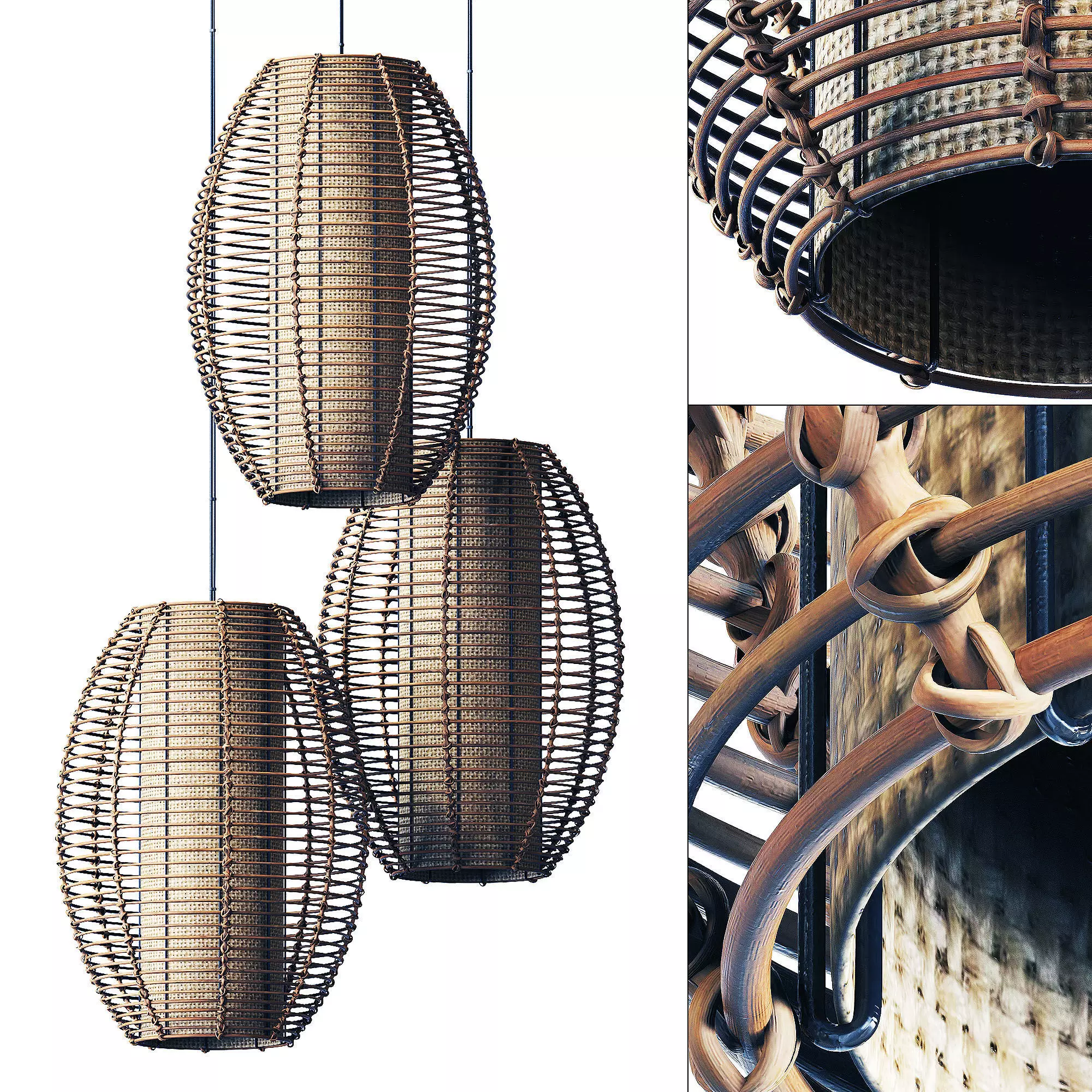 Lamp wicker branch rattan Barrel 3D model