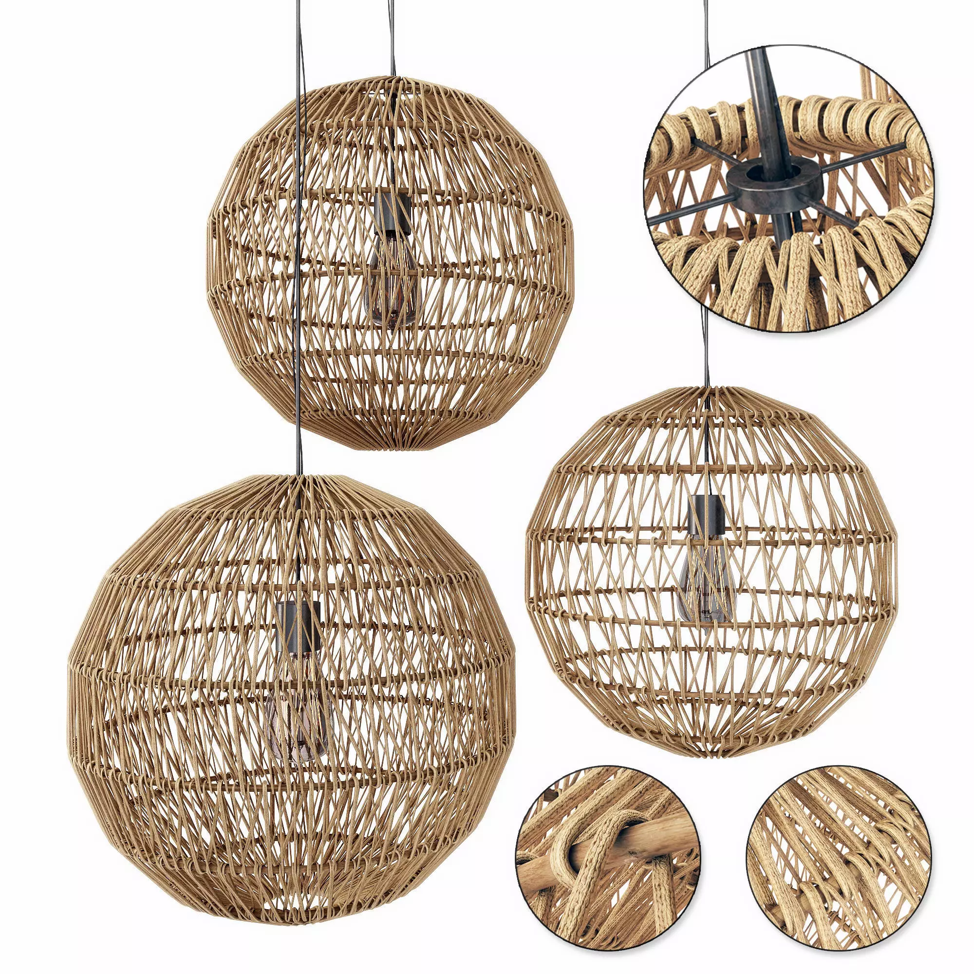 Lamp wood rotang wicker Sphere 3D model