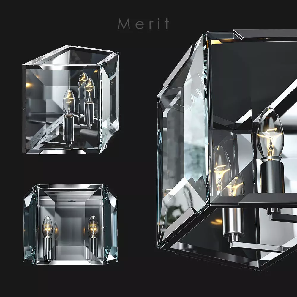 Contemporary designer wall light with glass shades from Merit collection.Recommend an Edison bulb to add some retro vibes.Metal parts finish - chrome, clear glass shade.Separate model with turn off lights is included.