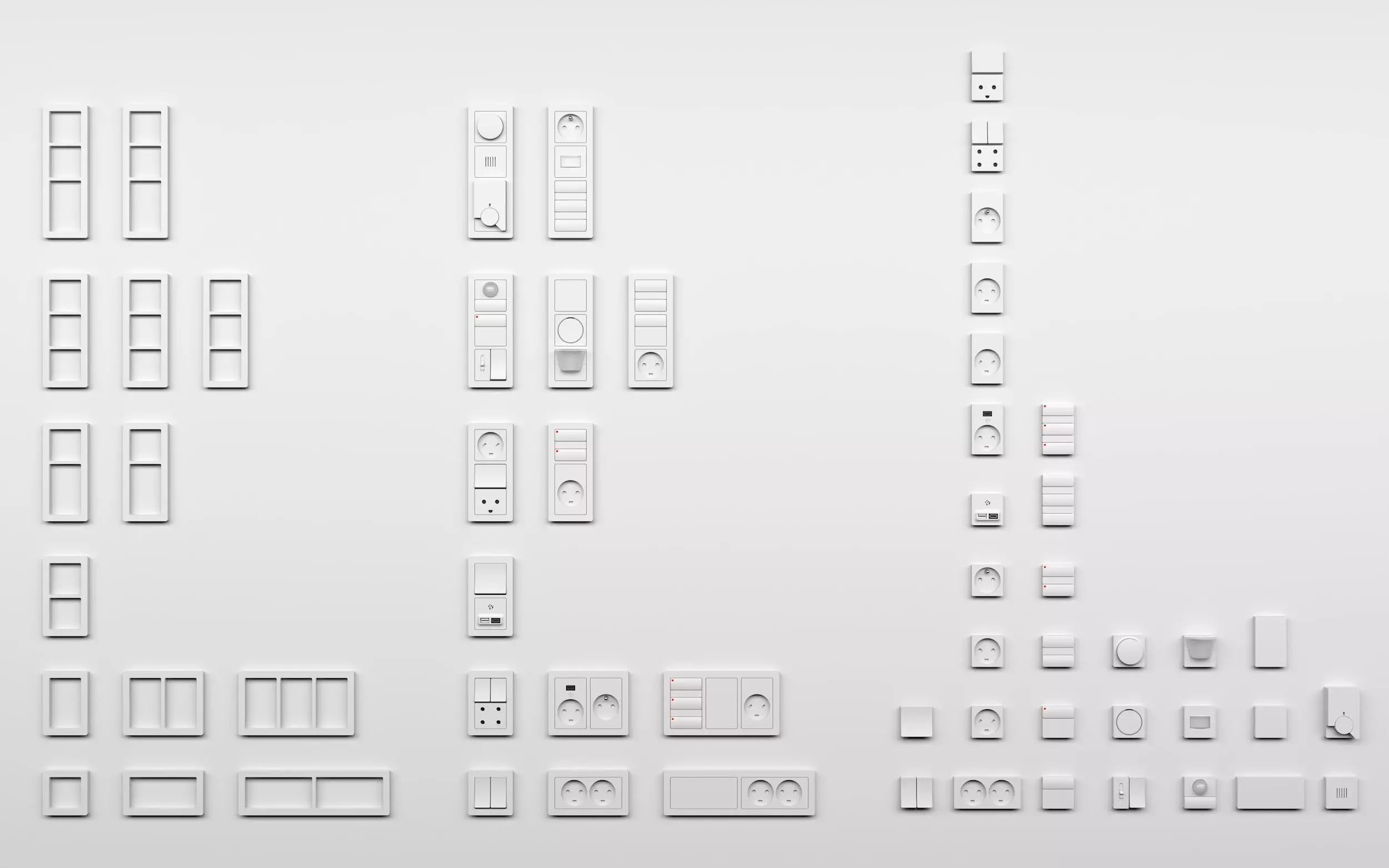 Danish electric sockets, to be used for realistic CGI. Most LK FUGA inserts (switches and plugs) are included, and can be swapped into each BASE frame.