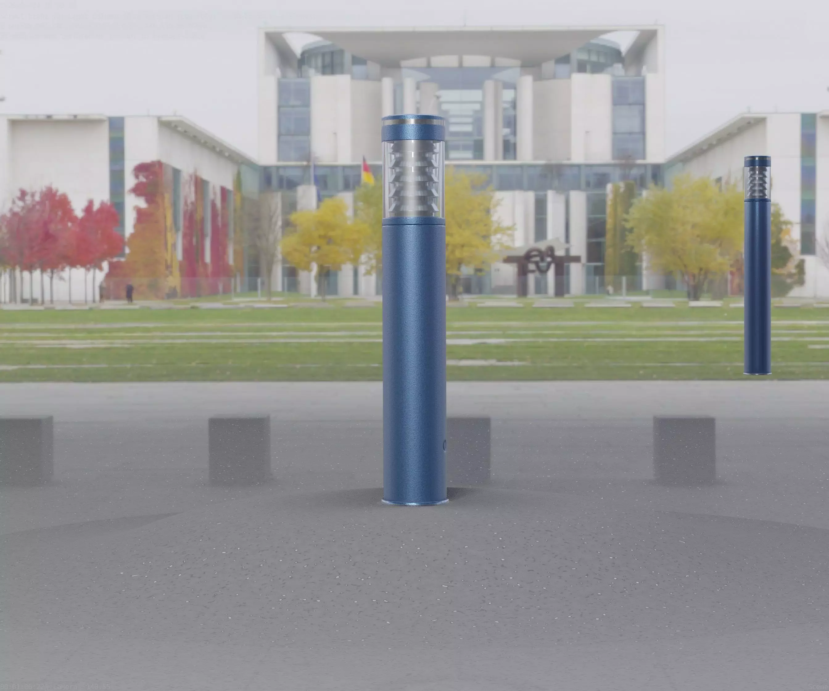 The blue textured light column 1 out of the street light set 9.