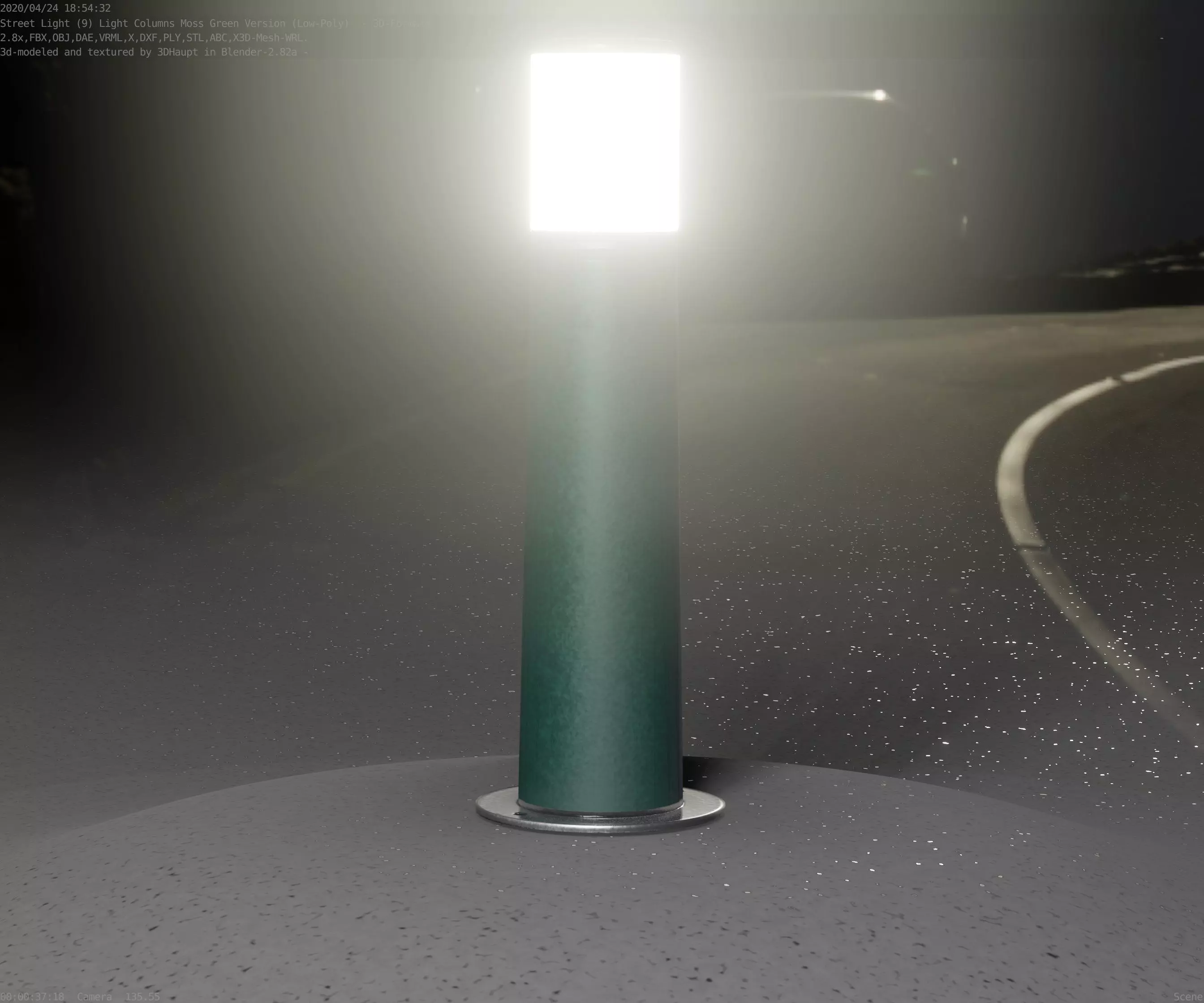 Low-Poly Moss Green Light Column 10 - Street Light Set-9 Low-poly 3D model