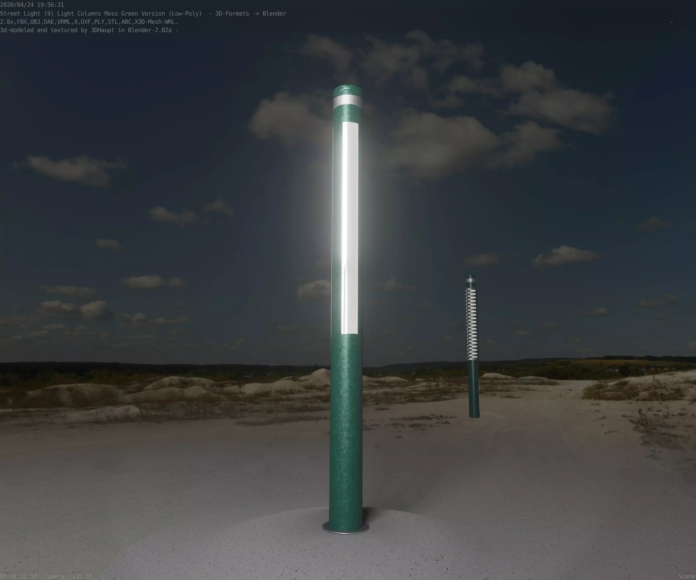 Low-Poly Moss Green Light Column 23 - Street Light Set-9 Low-poly 3D model