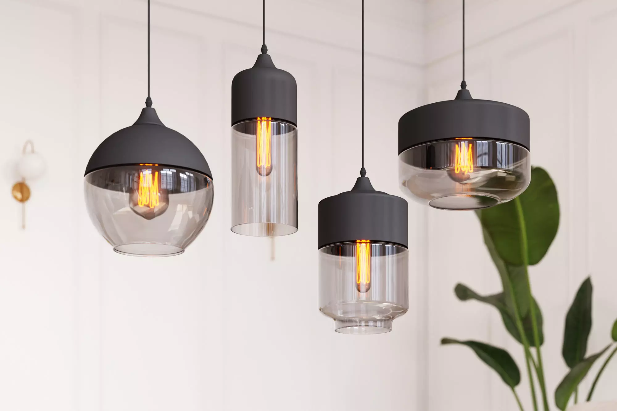 High-quality, photorealistic hanging lights of various shapes.Model prepared for architectural visualizations inside various 3d software.