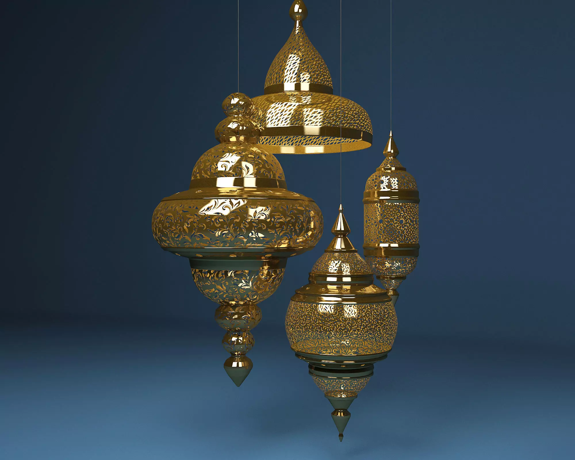 Moroccan Hanging Lamp Collection - Gold Finish Lantern 3D model