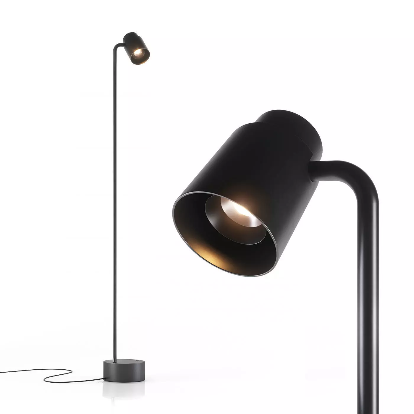 Reel freestanding lamp by Chors.The freestanding version of a luminaire from the Reel line by Chors. The high quality integrated LED light source, considerable flexibility in directing light, and the glass lens making it possible to adjust the lighting angle make the luminaire highly versatile.