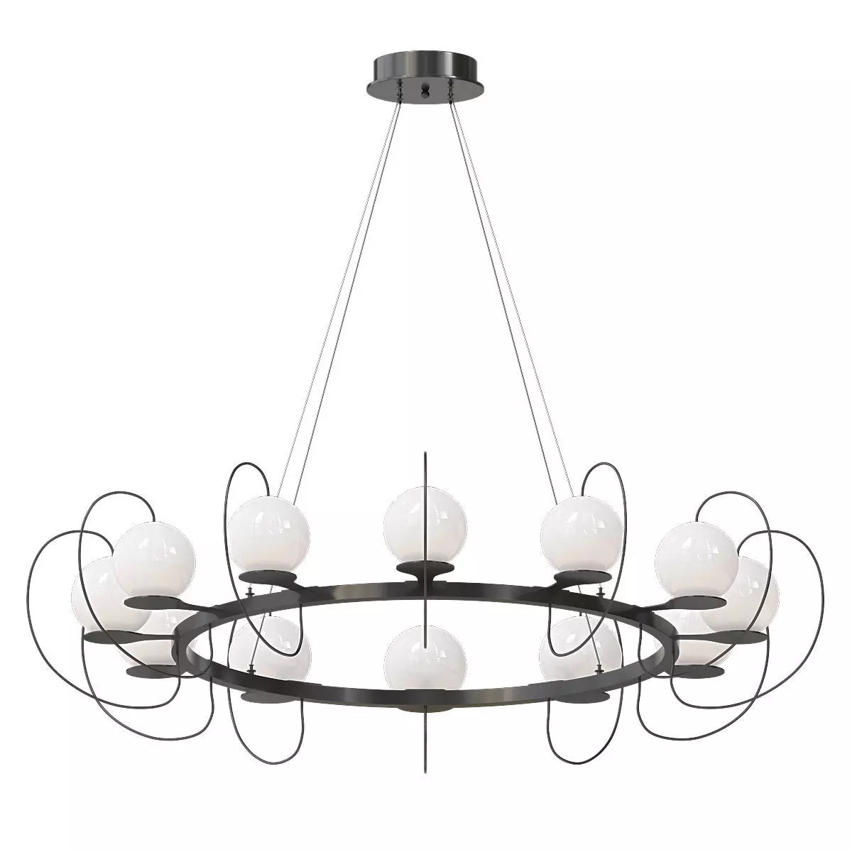 A series of ring-shaped LED chandeliers with white spherical lampshades on disc-shaped bases combines modern style and elegance. These light fixtures embody sleek minimalism and functionality. The white globe lampshades diffuse soft light evenly, creating a cozy ambiance, while the disc-shaped bases add originality and a design accent. LED lighting ensures energy efficiency and longevity, making these chandeliers perfect for use in living rooms, bedrooms, and other residential spaces.