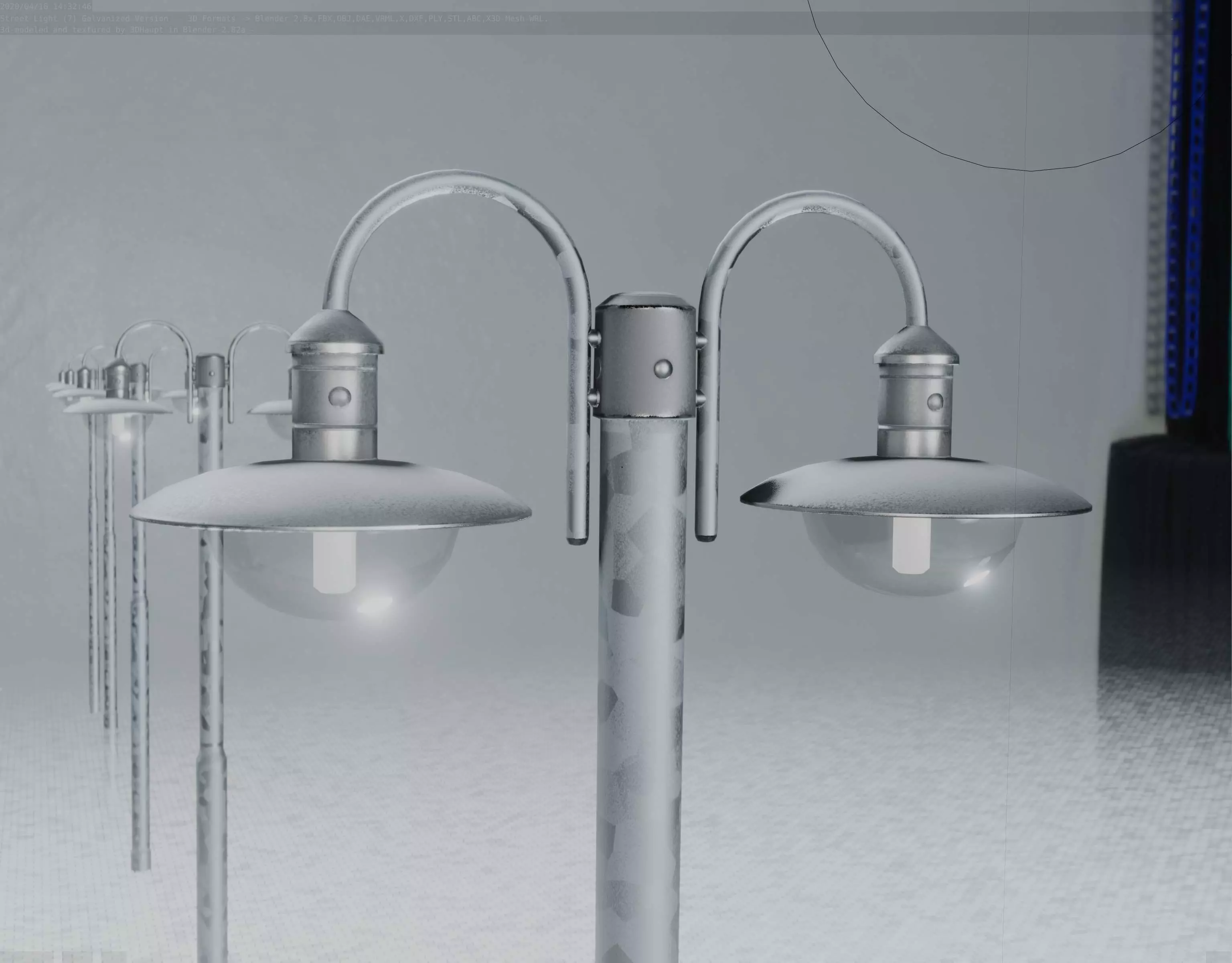 Street Light -7- Galvanized Version -3 Lamps- Low-poly 3D model
