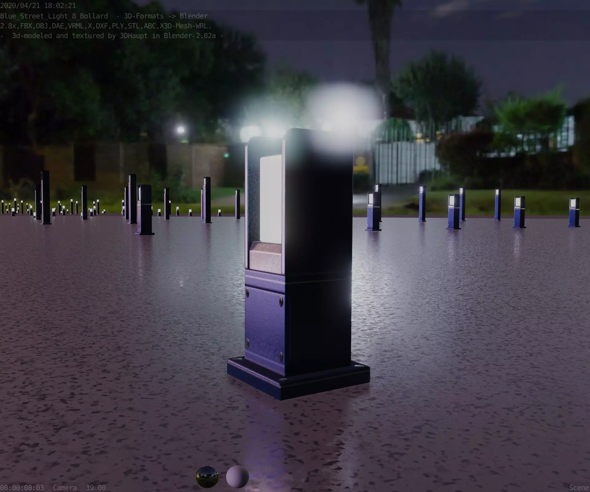 Here is street lamp number 8, a 350 mm high bollard with integrated light (the futuristic blue textured version).