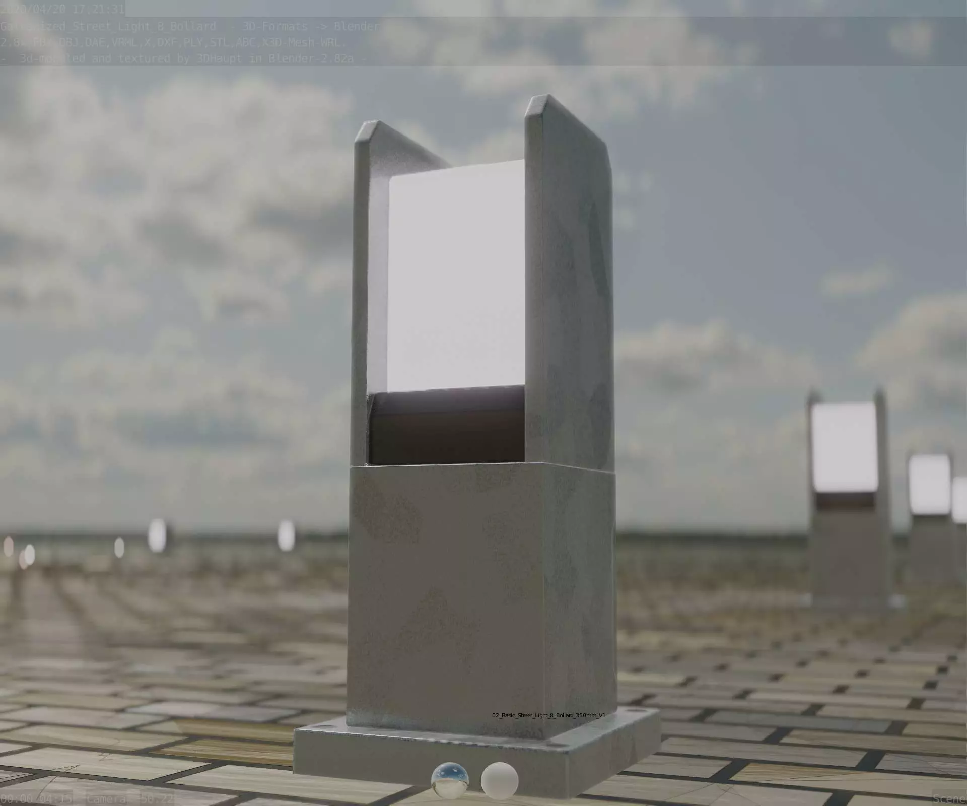 Here is street lamp number 8, a 350 mm high bollard with integrated light (the galvanized textured version).
