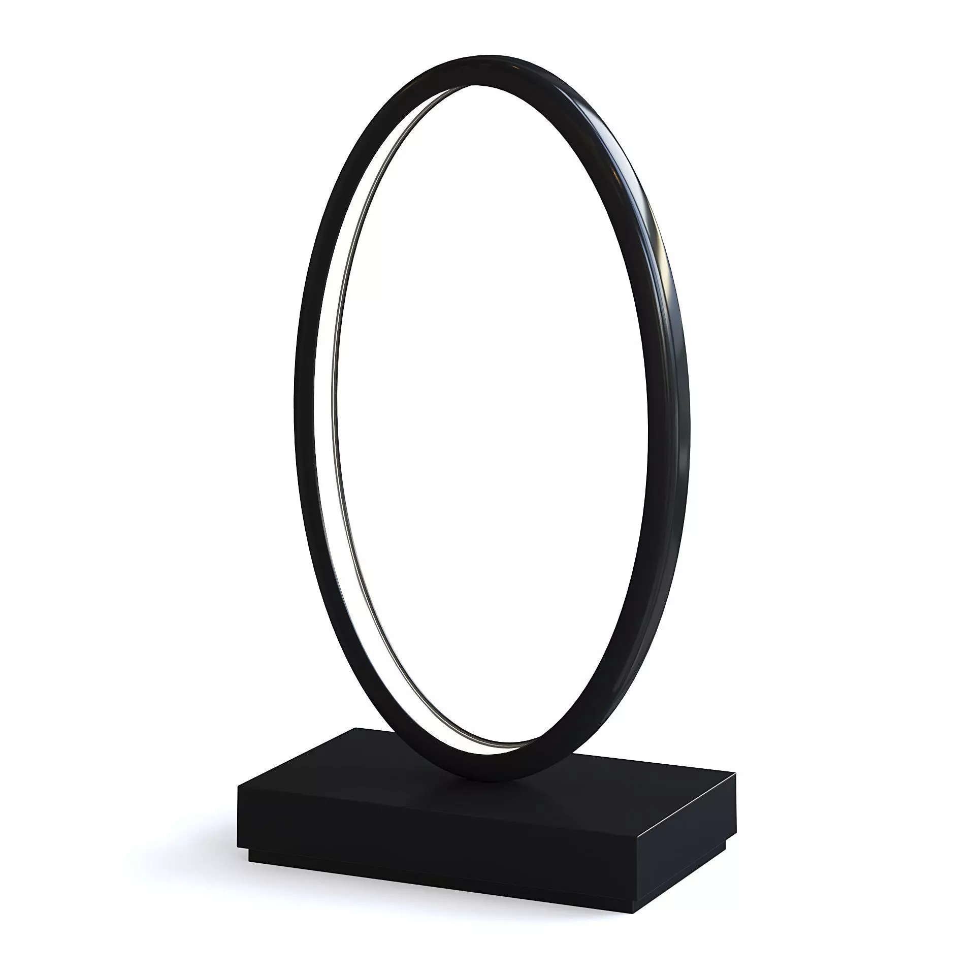 Black table LED lamp in a shape of a digit '0'.