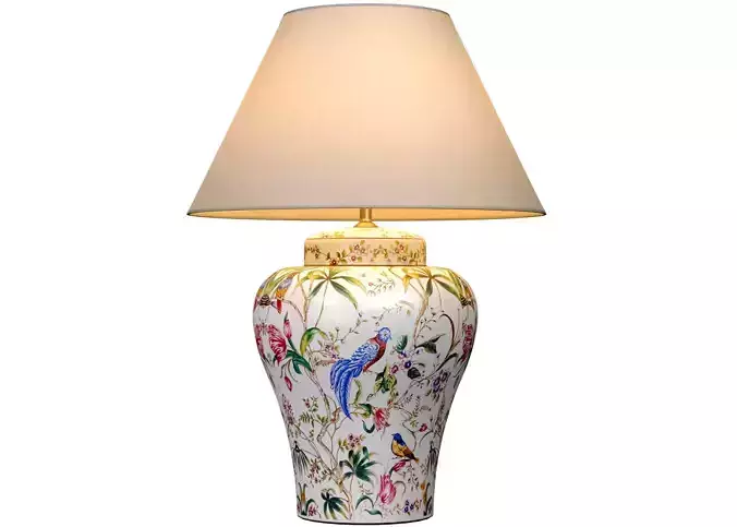 Table Lamp Tropicana Chinese Flower and Birds Ceramic Bedside 3D model
